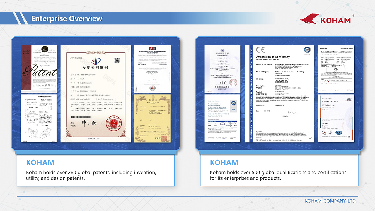 Koham holds over 500 global qualifications and certifications for its enterprises and products.